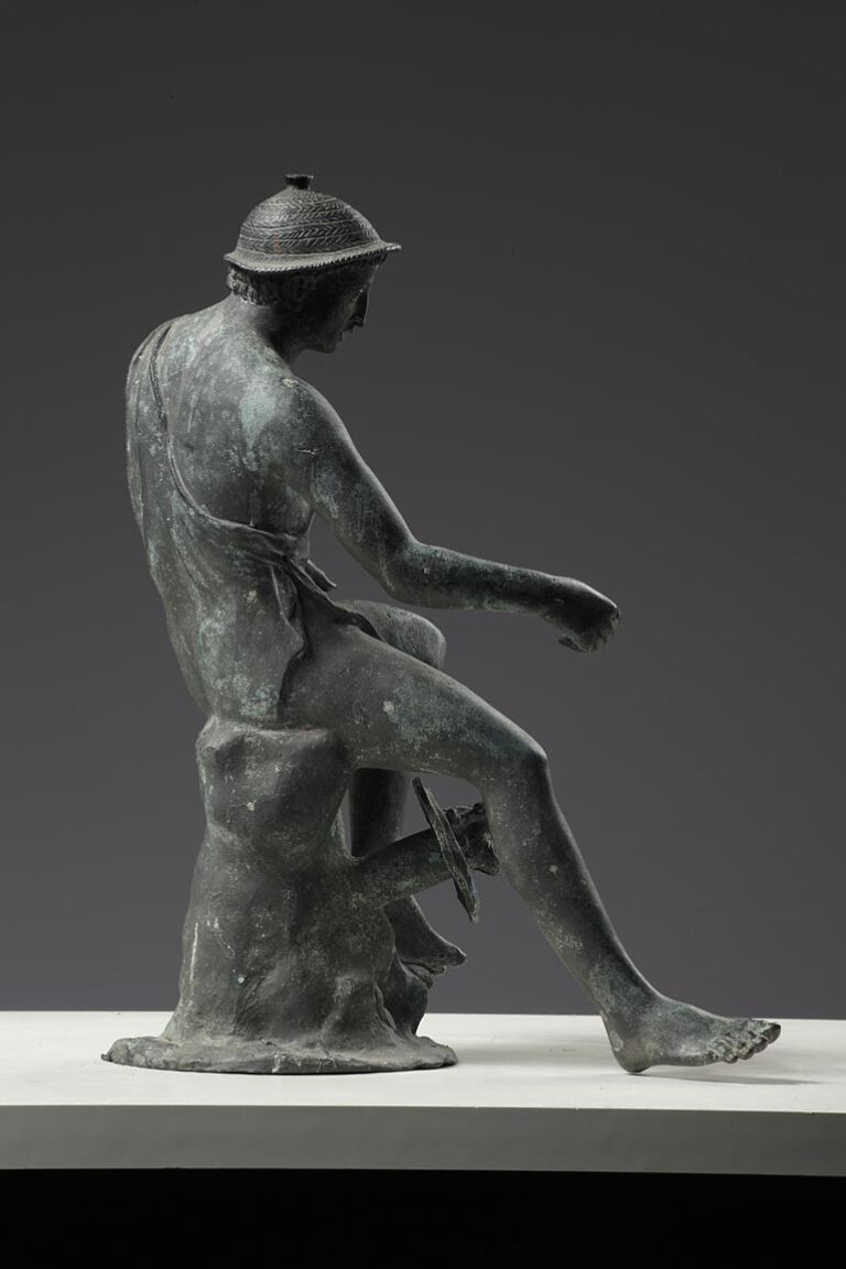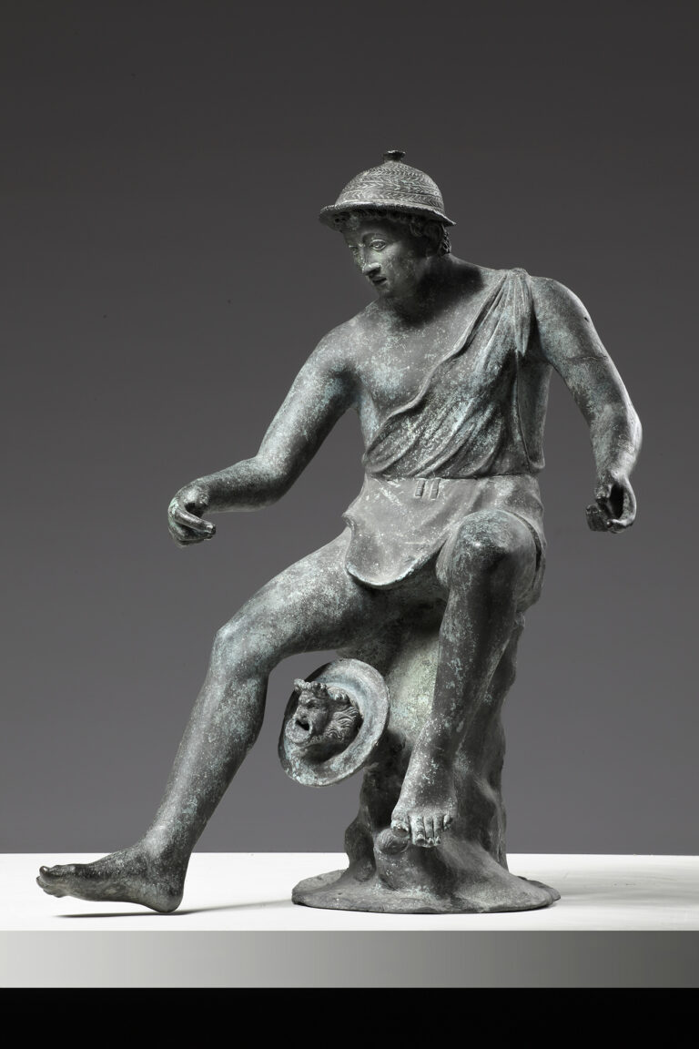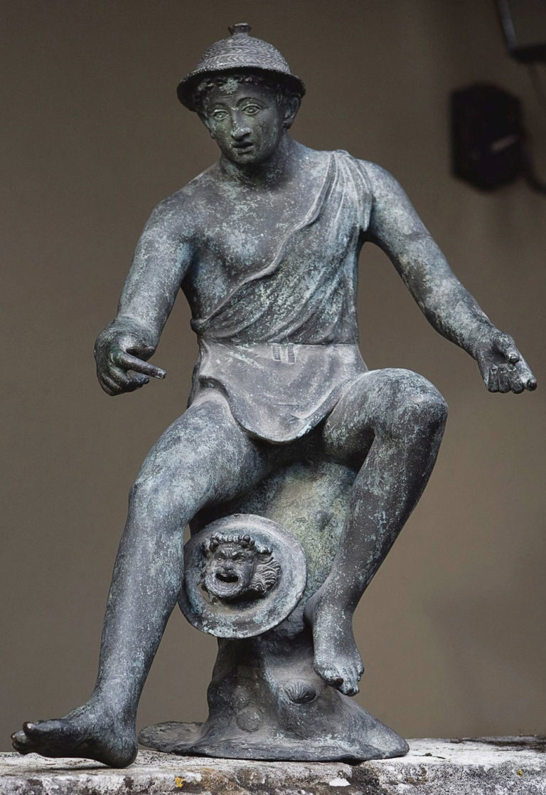 Dit bronzen fonteinbeeld uit de 19e eeuw is geïnspireerd op het antieke beeld van Mercurius, afkomstig uit Casa della Fontana Piccola in Pompeii, Napels. Het beeld toont de god Mercurius in een dynamische houding, met zijn kenmerkende petasus en caduceus. De gedetailleerde afwerking van het bronzen werk weerspiegelt de klassieke schoonheid van de antieke beeldhouwkunst.