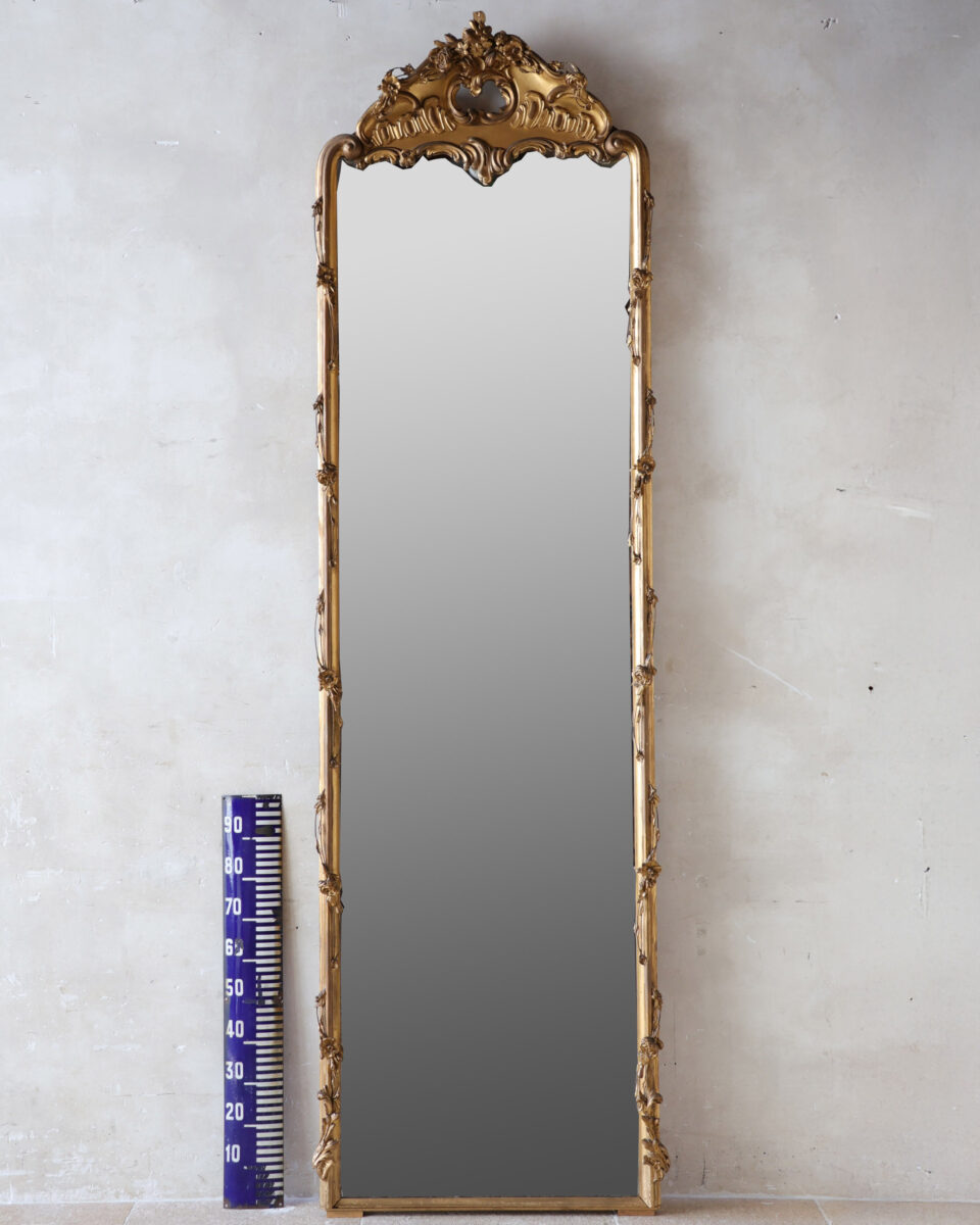 Antieke Rococo kuifspiegel – hoge 19e eeuwse passpiegel (290 cm)