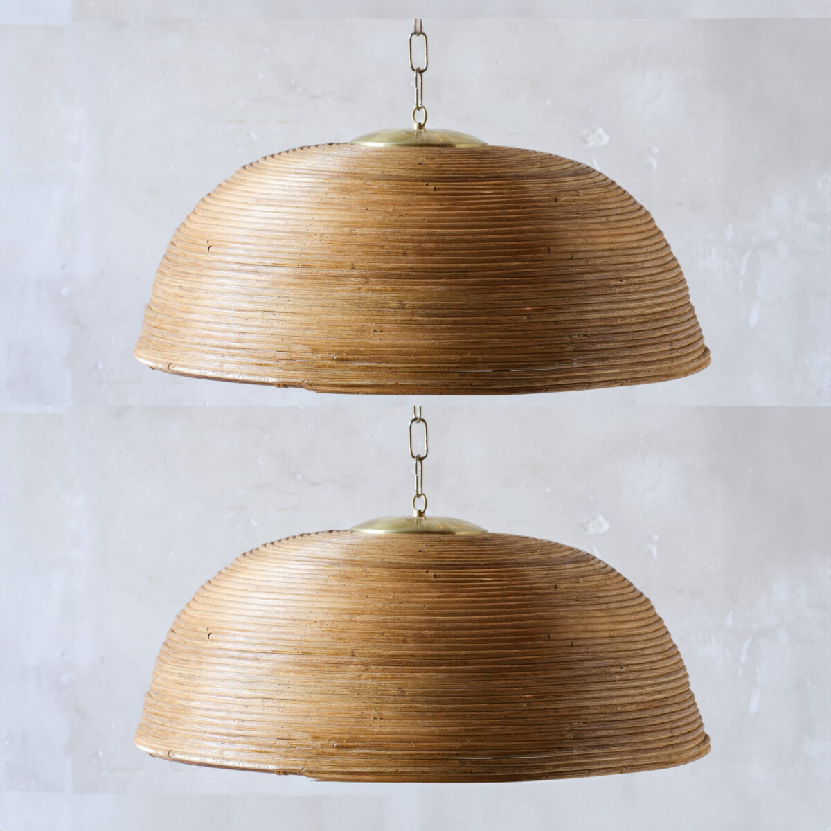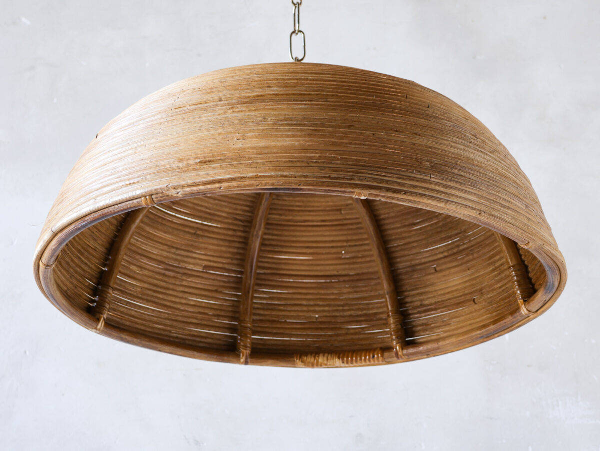 Vintage rotan bamboe hanglampen in Gabriela Crespi stijl, groot formaat.