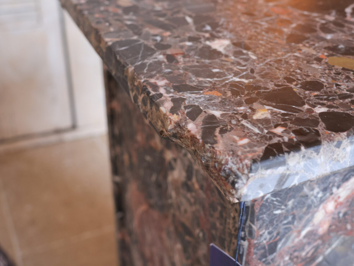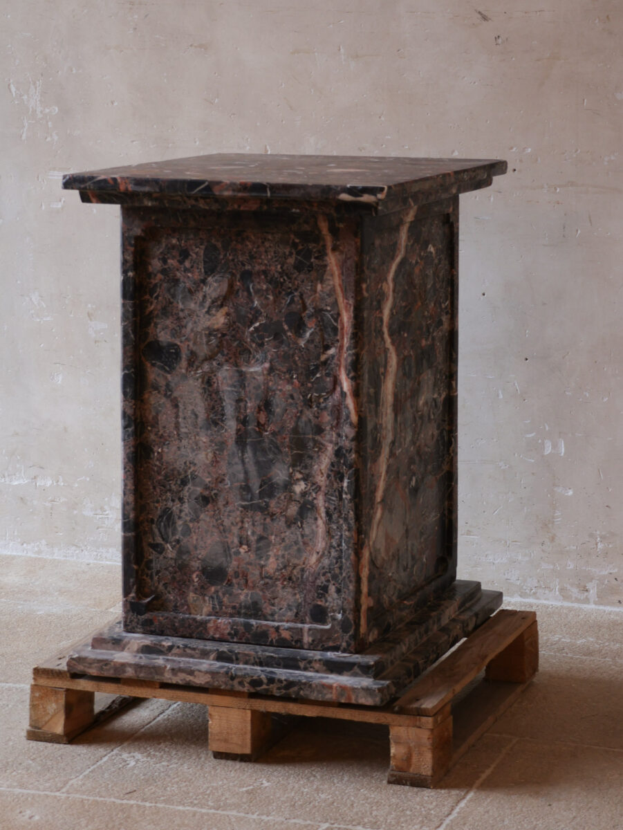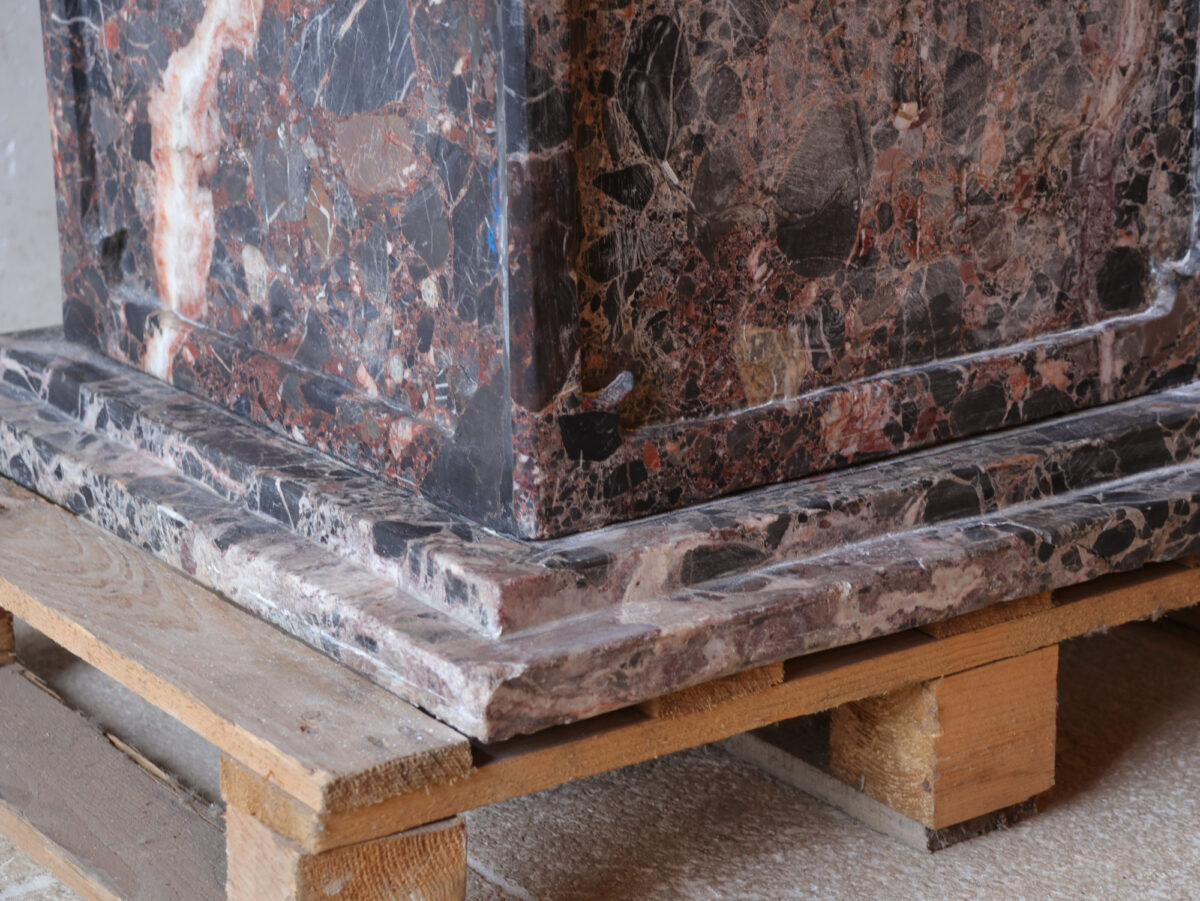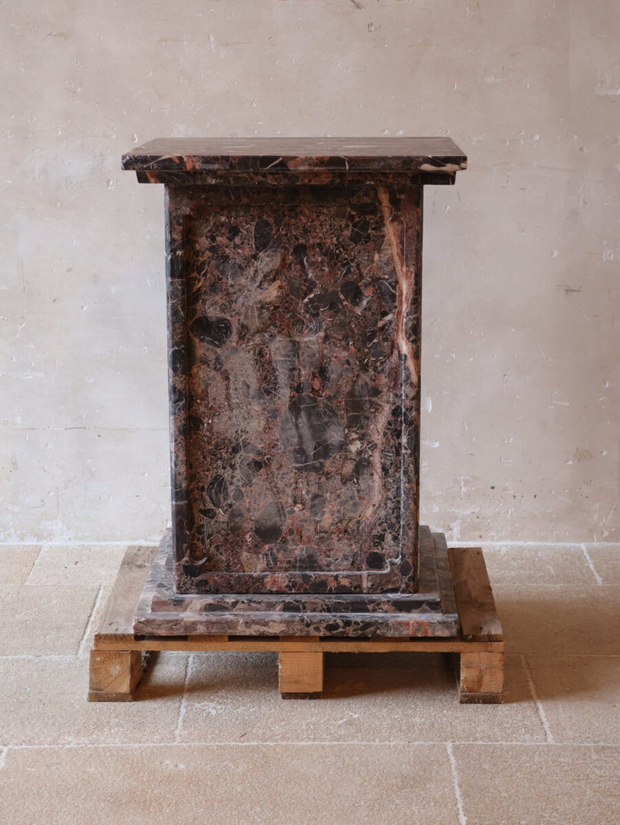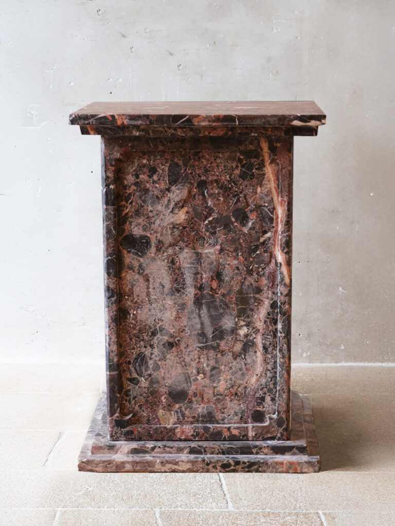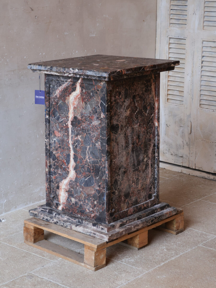 Italiaanse brocatelle marmeren sokkel. Het marmer heeft een prachtige mix van rood-, roze- en grijstinten. Zie foto’s voor details en kleine beschadigingen.