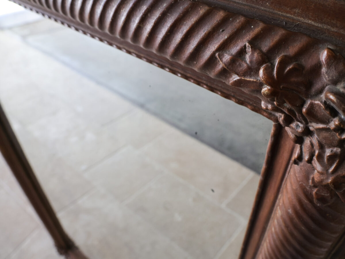 Deze spiegel combineert de elegante stijl van de Louis Philippe-periode met een unieke, warme uitstraling, waardoor het een sfeervolle toevoeging is aan elk interieur.