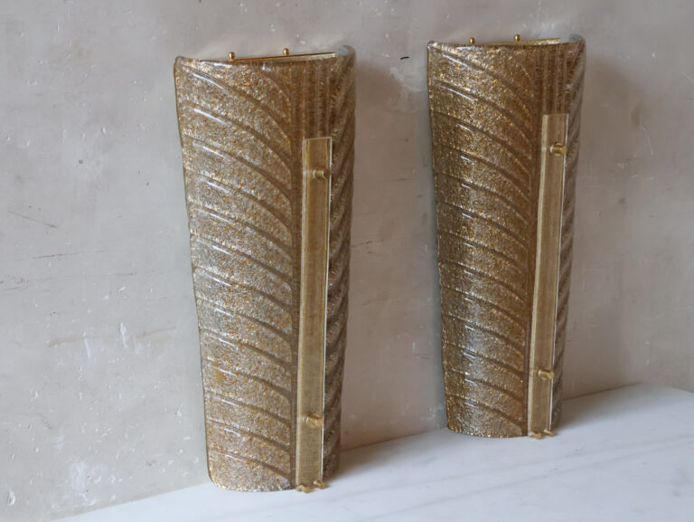 Paar wandlampen van Murano glas met een amber/goudkleurige afwerking