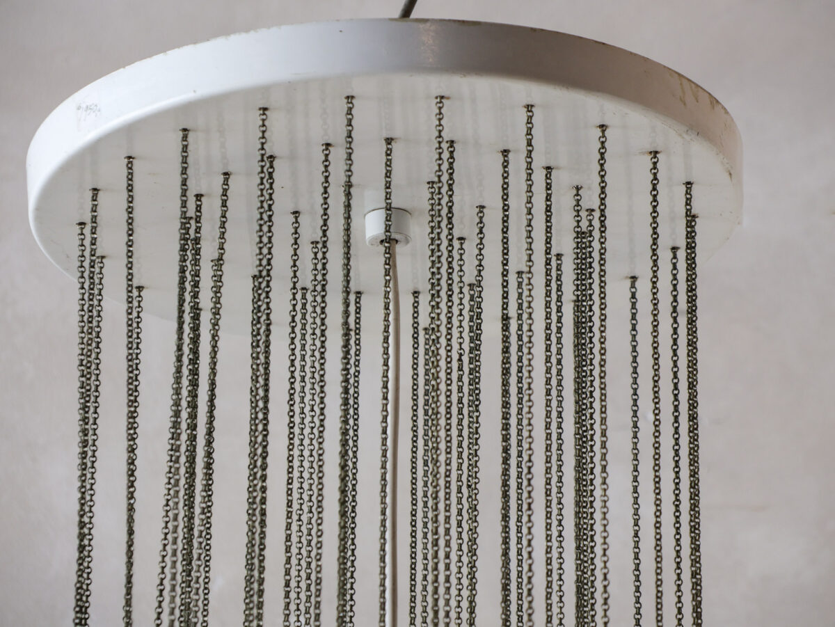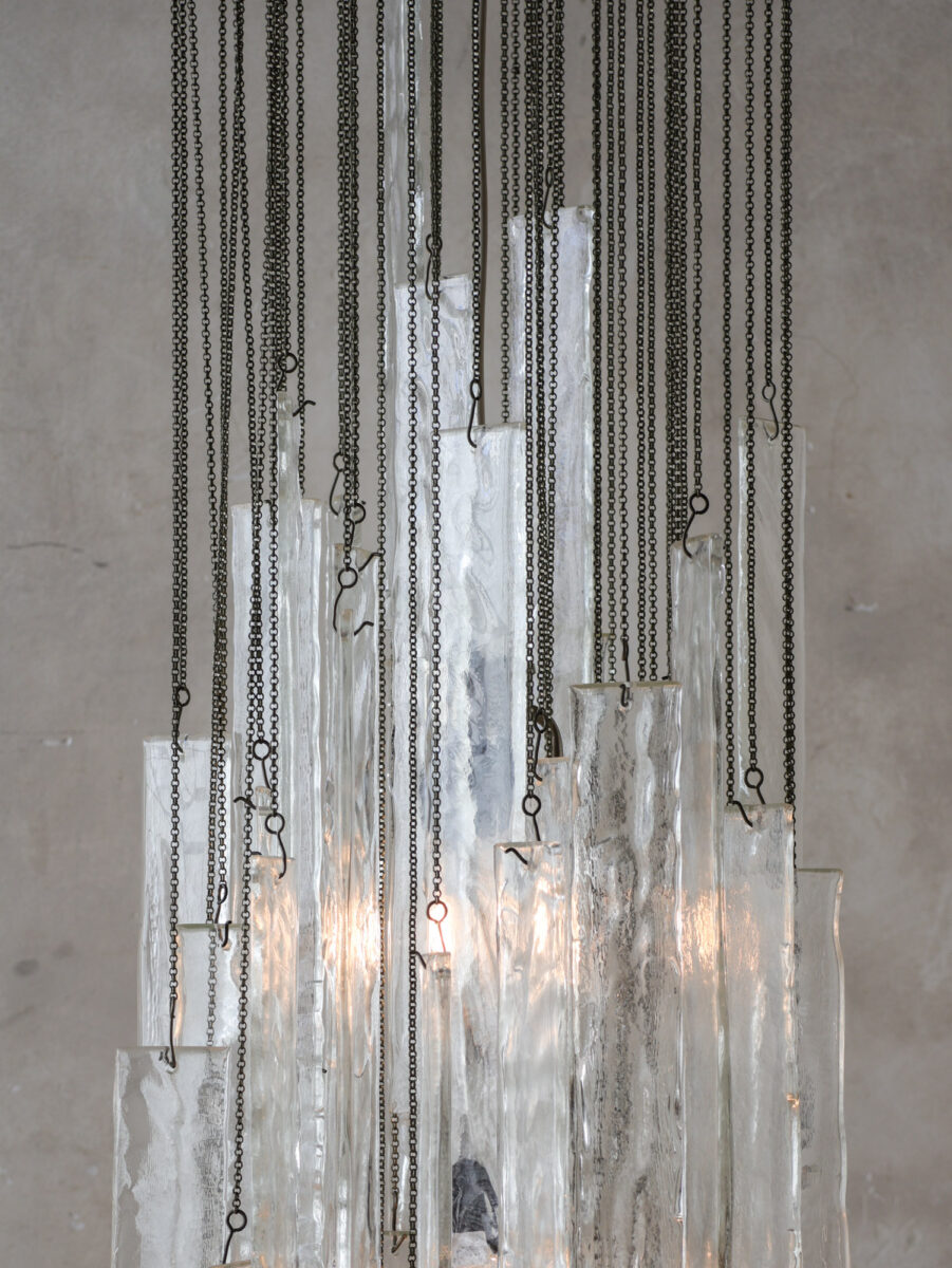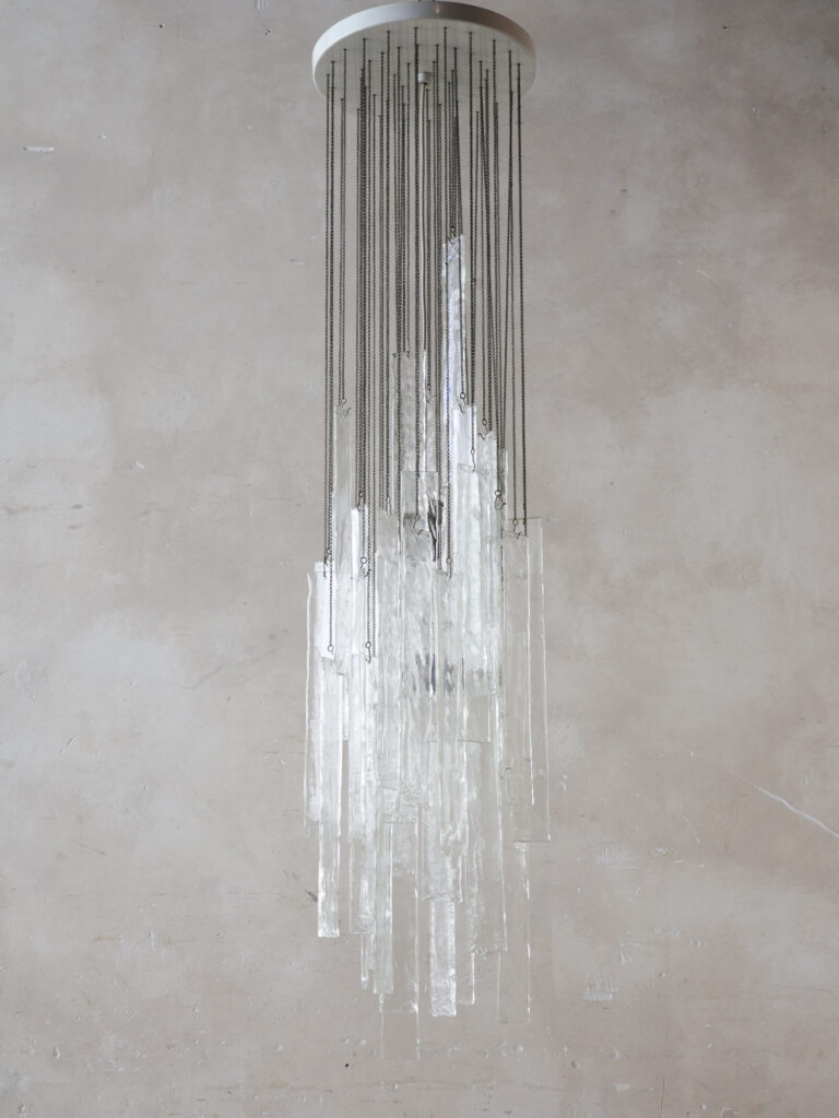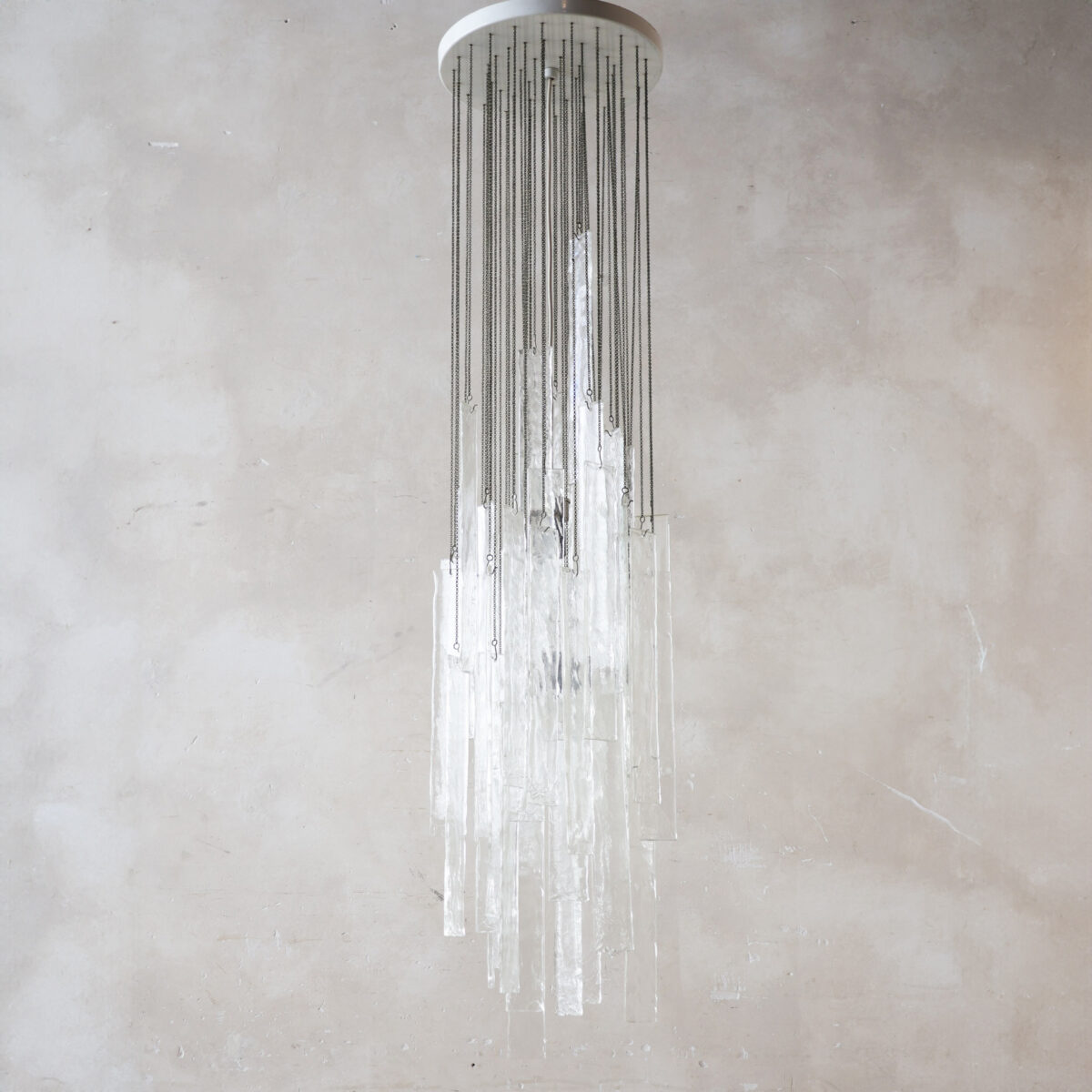 Prachtige vintage Italiaanse kroonluchter, waterval hanglamp gemaakt met elementen van muranoglas door Mazzega in de jaren 60- 70.