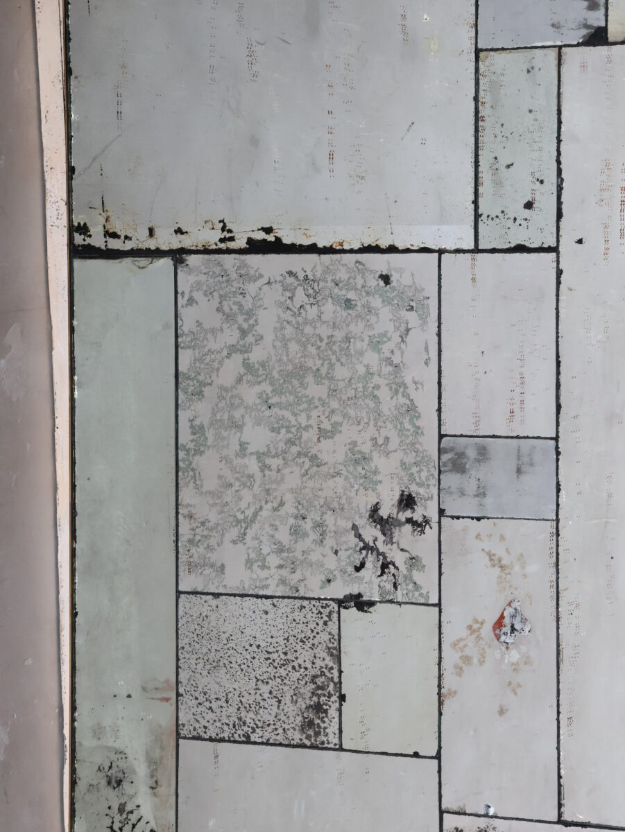 XL “Patchwork” spiegel van verweerd en verouderd spiegelglas.